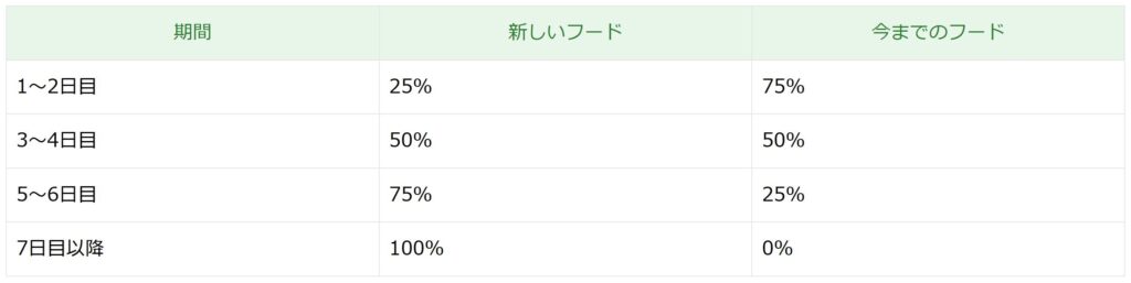 このように徐々に切り替えることで、猫が新しいフードに慣れやすくなります。